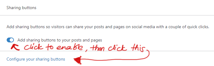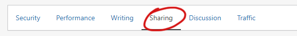Go to the “Sharing” option. There are a few options available here that you may want to look at, but right now we just want to enable the Sharing Buttons feature.